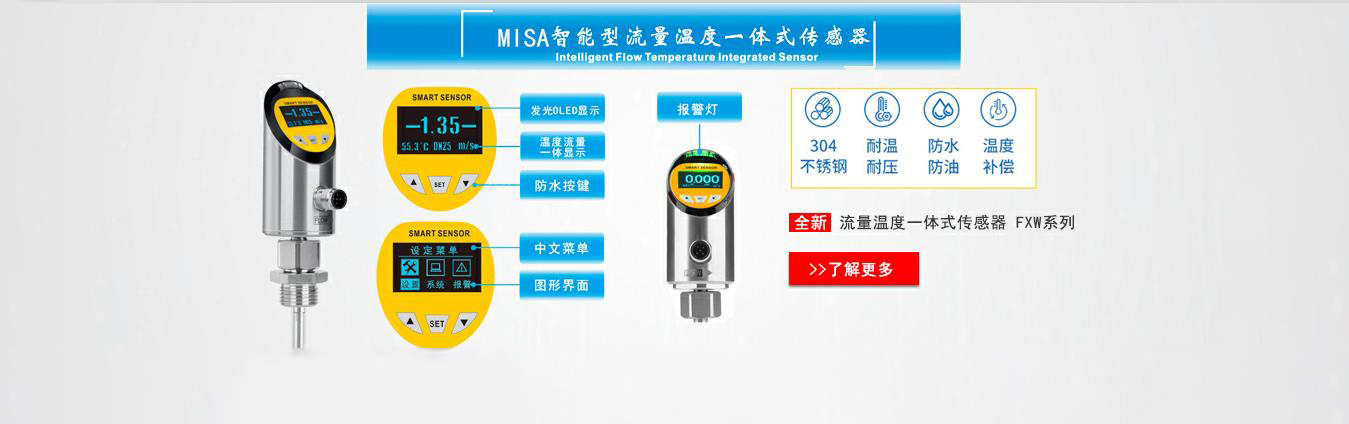 MS-FXG 流量溫度傳感器產(chǎn)品特點(diǎn): 1、溫度和流量 一體式傳感器 2、自發(fā)光OLED;顯示清晰銳利 3、溫度智能顯示報(bào)警接點(diǎn)輸出 4、流量智能顯示報(bào)警接點(diǎn)輸出 5、中文+圖形界面;傻瓜式菜單 6、數(shù)字通信;模擬量一體式 7、精度高穩(wěn)定性好 8、耐結(jié)垢,耐腐蝕 8、全灌封設(shè)計(jì)全防水殼體 9、耐壓高、高壓型可耐壓10MPa 10、手機(jī)掃碼安裝指導(dǎo)功能;無需說明書在線工程師專業(yè)服務(wù)